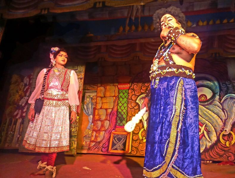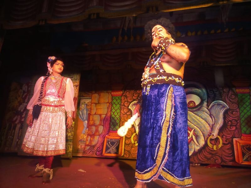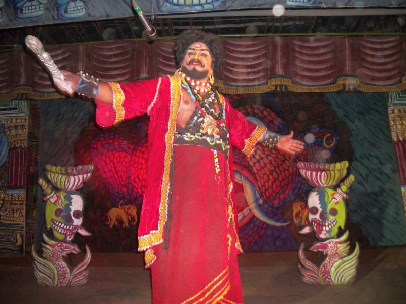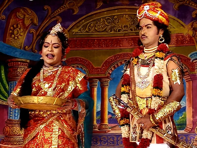 Then entry of Mayala Marati in an interesting incident. Mayala Marati was a wiked and used to punish beautiful ladies and goodmen. Marati is having a lover Sargu. He was a worshipper of Kshudra Devatha. Also, he brought Balanagamma by miracles into his custody. Balavardhi Raju son of Karyavardhi, all the family members, soldiers of Karyavardhi were stone shaped in the custody of Mayala Marathi. Mayala Marati life secret was in the parrot. Balavardhi Raju, cleverly brought the parrot and killed. After all the poisoned persons were released and were happy.