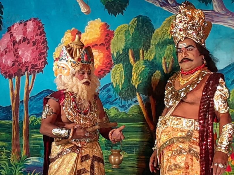 Hiranyakashyapa, the demon king wants to kill Lord Vishnu who killed his brother Hiranyaksha. Hiranyakashyapa be gets a different boon from Lord Brahma that he could not be killed by any weapon, by any human or animal, on land or on water or on air, not in the day, nor in the night. With the help of such a powerful boon, he defeats Devendra the King of Heaven, made the Astadikpalakas (The Eight Guardians of the directions) his servants and propagated himself as God.