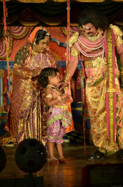 With the intervention of the Sage Narada. The son of Hiranyakasyapa born with prenatal wisdom and devotion for Lord Vishnu. Hiranyakashyapa tries to change his son away of the devotion of Lord Vishnu. Hiranyakashyapa tries his son first with love. When he failed, he tries with fearful punishments. Prahlada was thrown from the hill, pushed into fire, thrown into the sea, thrown in front of violent elephants, and poisoned. But Prahlada keeps on surviving from all the punishments by the grace of Lord Vishnu. Even after many punishments, Prahlada refuses to give up his devotion for Lord Vishnu.