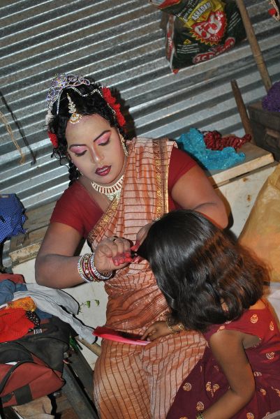 The surabhi artists are very active and dedicative. They participate in all stage skill. They feel the stage is temple. They are all devotees. They feel every role of there is pure. They are perfect in any role. The set making or the molding work or the costume making or the electrical work or any other task that is releated to the surabhi drama are performed by the family. All the artist are technicians as well. There is no difference between the artist whether playing a major role or a medium role. When the artist retire from the current scene, he/she would participate in the back-stage work to make out the next scene. They will be ever busy in day time also in making drama materials,curtains,electrical work, makeup, in every stage work.
